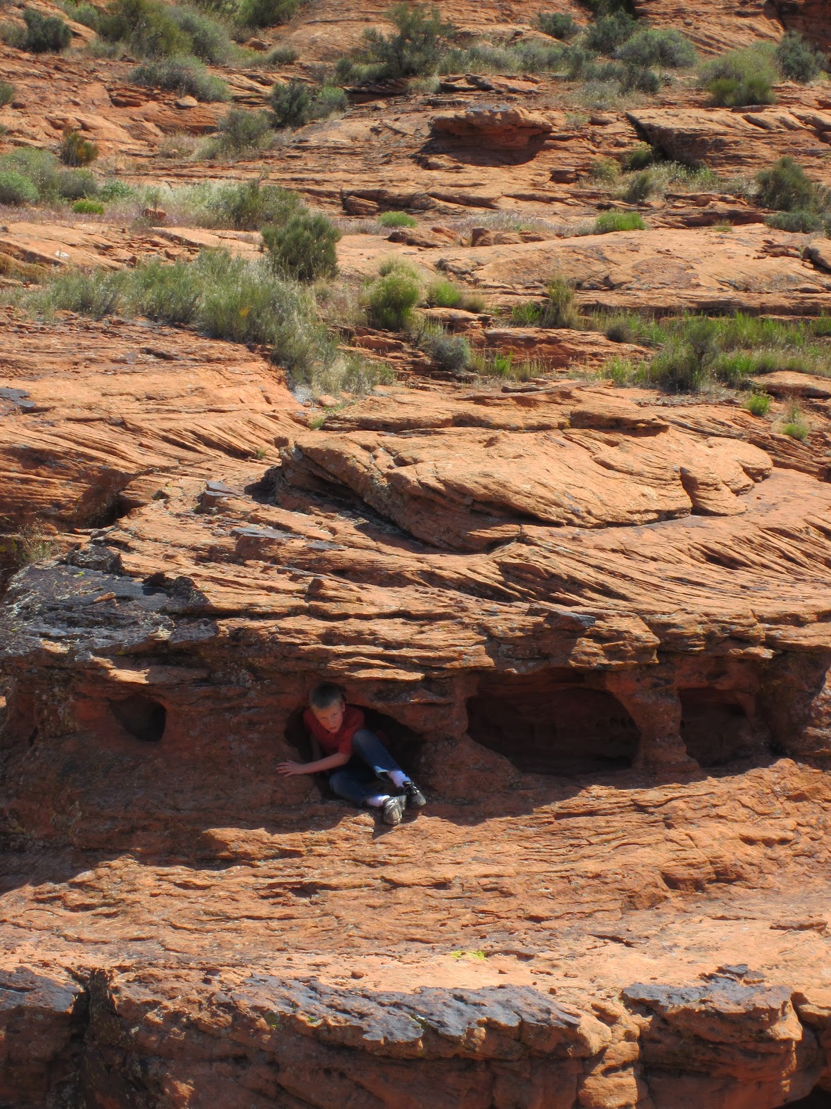 Porter thought it would make a good picture if he climbed into one of these holes.